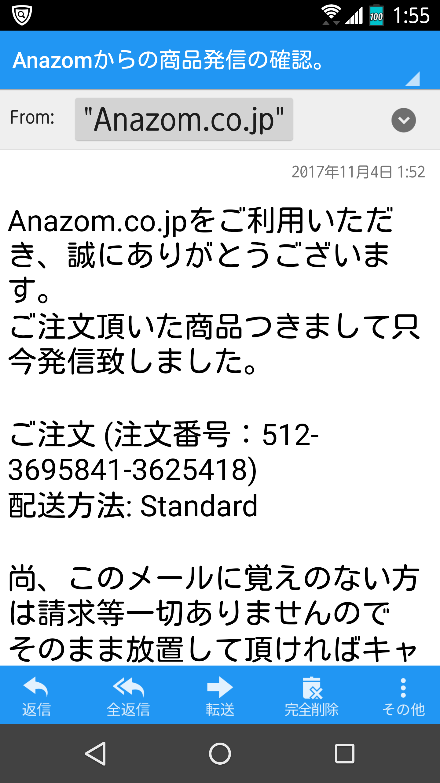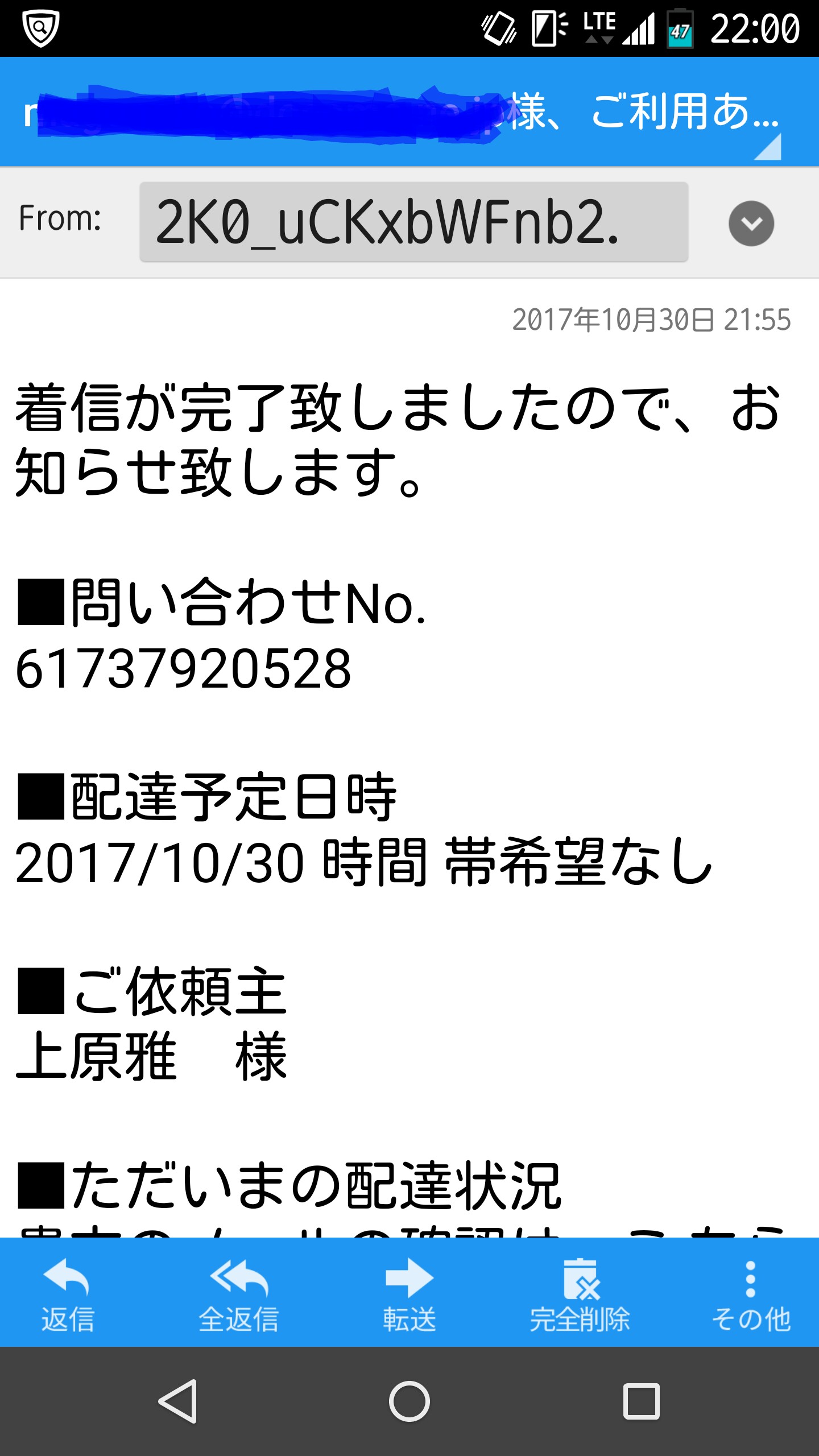偶然に何かを品物を注文していれば、危険度は大です。(=・д・=;;)