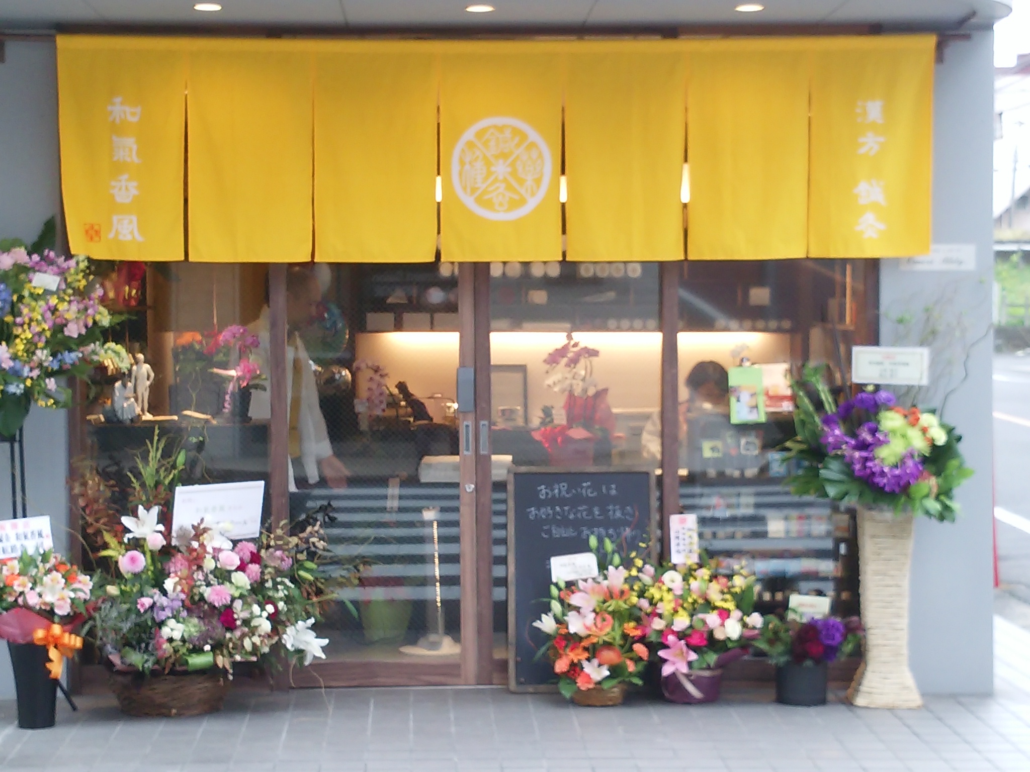 駅から一本道で約7分、店頭にお祝いのお花がいっぱい並んでいるお店が、「穏やか・和やかな雰囲気で、良い香りが漂う」お店、和氣香風でした。