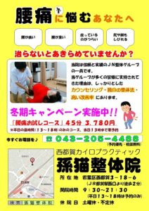 なお、今回は冬季キャンペーンとして、「腰痛お試しコース」のことを新たに掲載しました。
